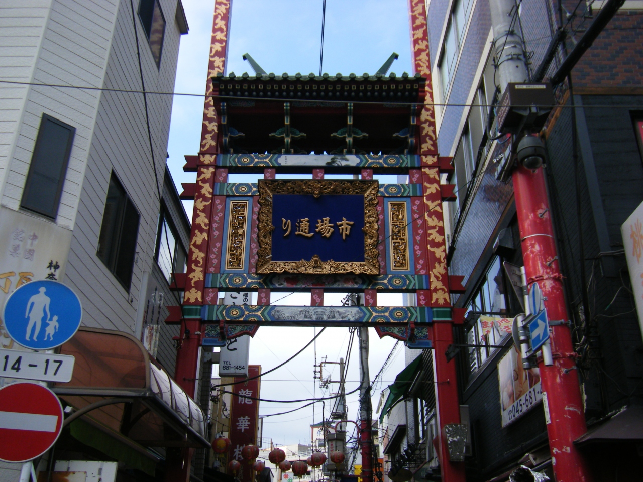 市場通り門は横浜中華街の関帝廟通りの真ん中付近、関帝廟通りと直角に交わる形で存在している市場通りに存在している門です。善隣門や朝陽門のような巨大で派手さはあまりないのですが、それでもいかにも中国といった色使いの綺麗な門なので、通る際には是非とも見上げていただければと思います。