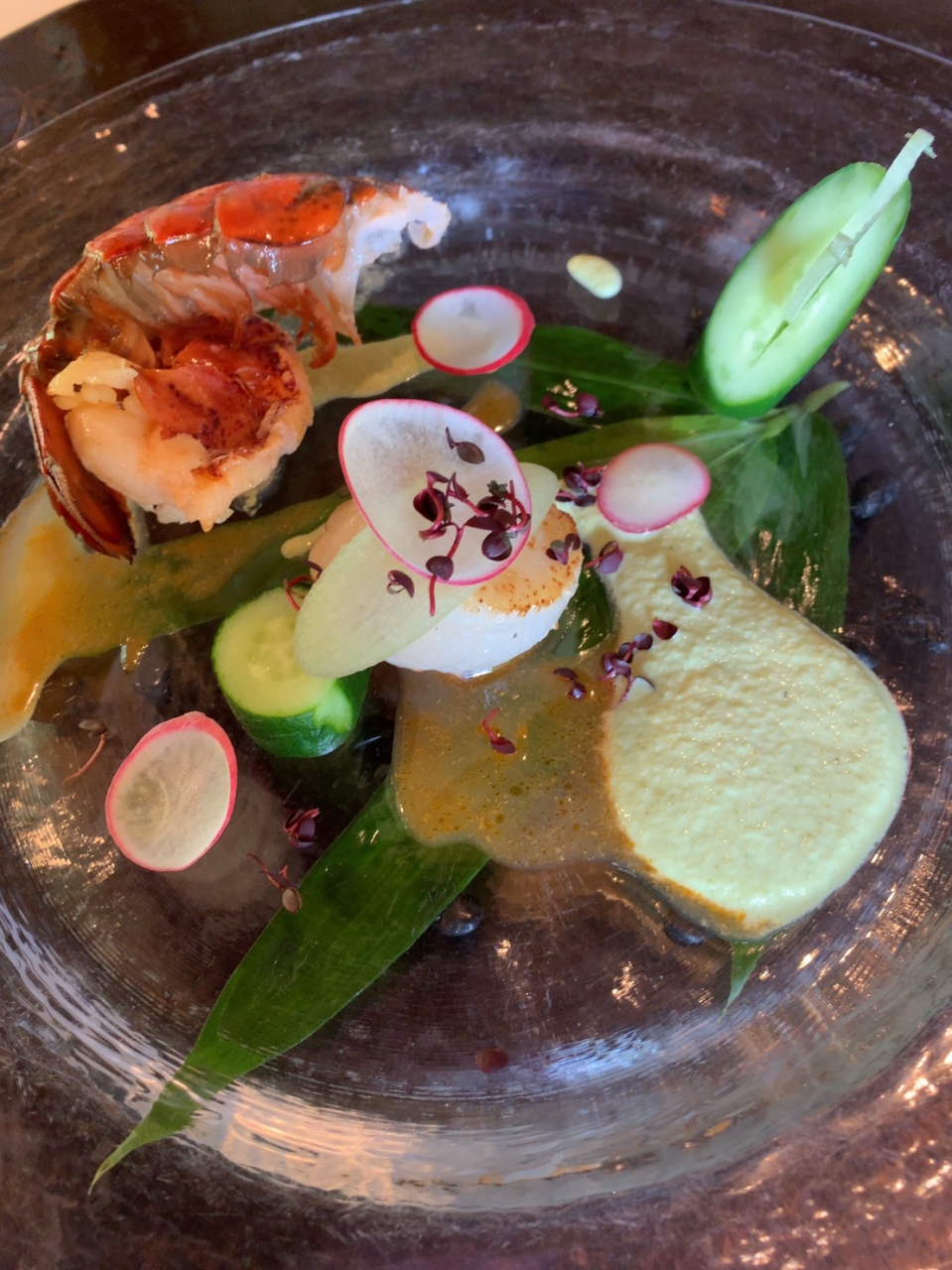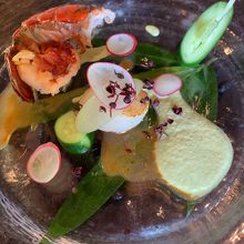 アボガドソース添えの地元産蛸に始まり、前菜はオマールと帆立、トウモロコシの冷製スープ、白身魚、牛肉のトリュフ添えととても美味しいフルコースをいただきました。