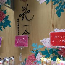 松坂屋上野店の地下1階にあります。ショーケースに色とりどりの綺麗な商品が並べられてあり、初めは 和菓子屋さんかと思いましたが、モナカの中に雑炊、フリーズドライのにゅうめんなどが入っており お湯をかけるだけで楽しめます。種類が多くて、見た目も綺麗なので、プレゼントに最適だと思います。