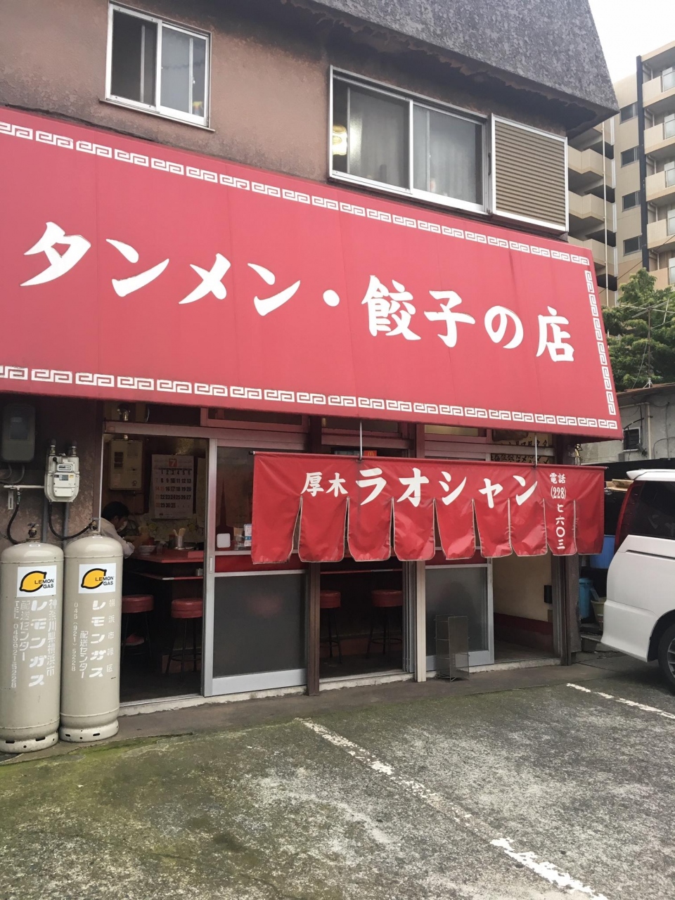 本厚木を訪れた際、前日に飲みすぎたせいもあり、さっぱりしたラーメンを食べたいと検索して訪問しました。本厚木駅南口からは東に10分弱歩いた場所にあります。とてもシンプルな赤い外観が特徴です。