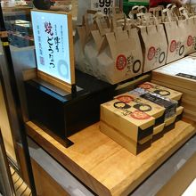 鹿児島発祥のお店らしくかるかんや鹿児島土産のカスタードンなどが売っていますが、福岡では博多焼ドーナツがウリのようで、広い場所をしめていました。その日に食べるものと 2週間ぐらい持つものが売っていて日持ちする方を買って家で食べて、とても美味しかったですが、食感はドーナツというよりカステラだと思いました。
