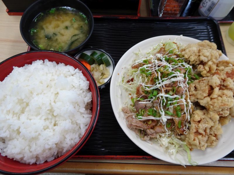 料理の量もご飯の量も多い。ご飯は丼ぶりで提供されて既に大盛り状態。大盛り(+100円)を注文するときは注意が必要です。