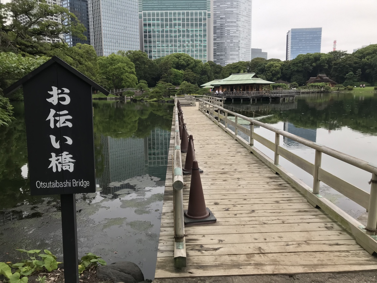 お海水の池である潮入の池の岸と「中島の御茶屋」のある中島を結んでいる橋です。