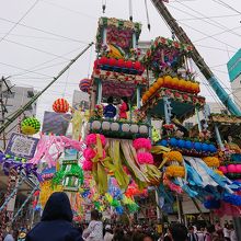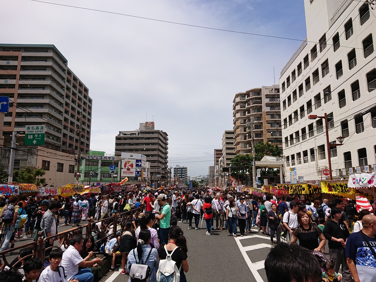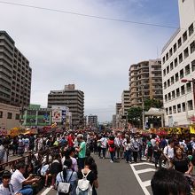夕方ほどは混んでませんが、それでもすごい人混みでした。屋台も相変わらずすごい数と熱気でした。