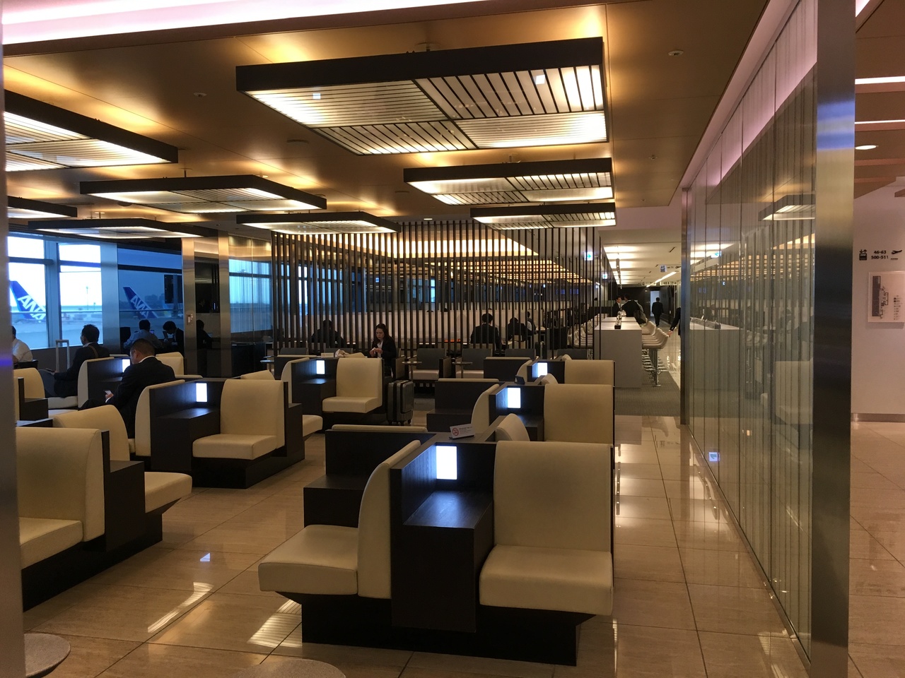 とにかく広いです。フロアの席が全てうまる時などあるのかな?というくらいの広さです。ホットミールはさすがに有りませんがビール、日本酒、スナックが自由に頂けます。スターウォーズを模したキッズルームも有りますのでキッズの暇つぶしにも重宝しそうなラウンジです。