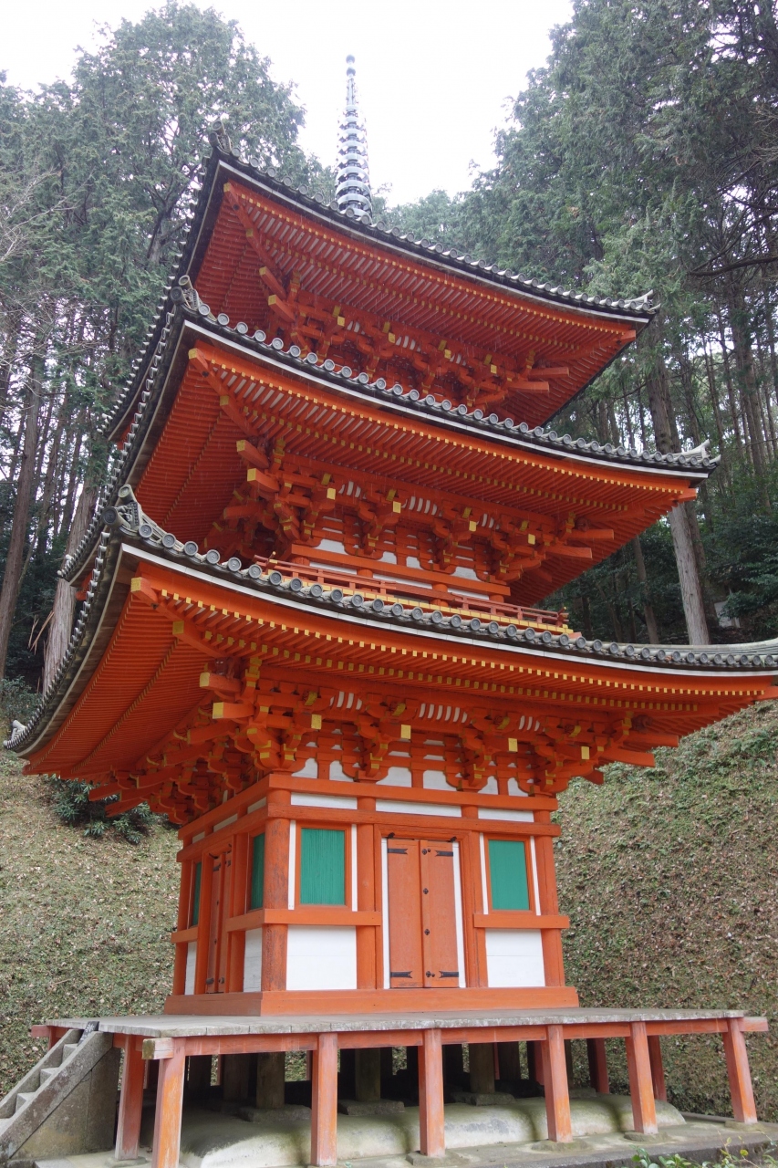 寺院の門をくぐると、小さな池と朱い三重塔が建っている境内を見渡す事が出来ます。私が訪れた時期は、花の時期ではありませんでしたが、四季折々の花や紅葉で境内が彩られる事で有名な寺院のようです。