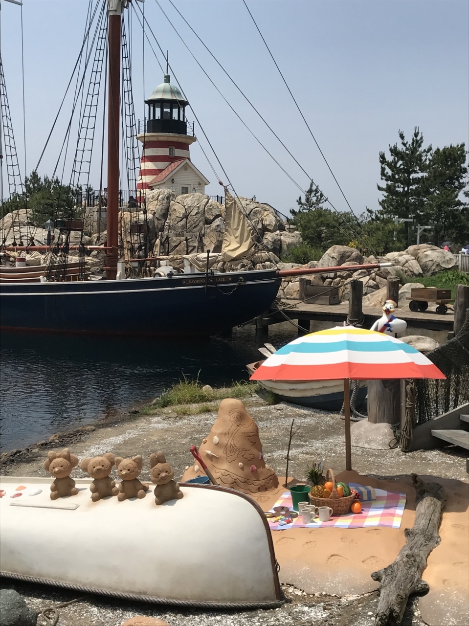 開園20分後に入園できましたが、既にショップの入場制限が開始していました。すごい人気ですねダッフィー。ケープコットがとても可愛く写真スポットもたくさんありました。