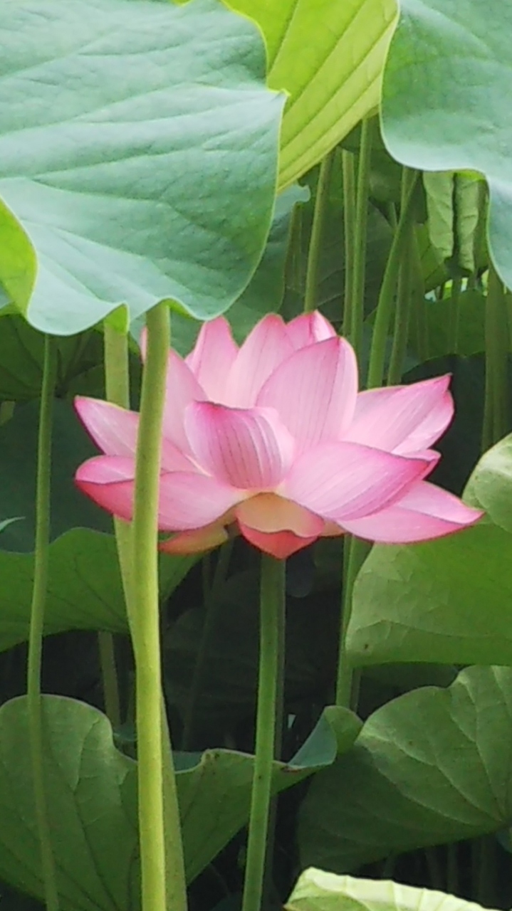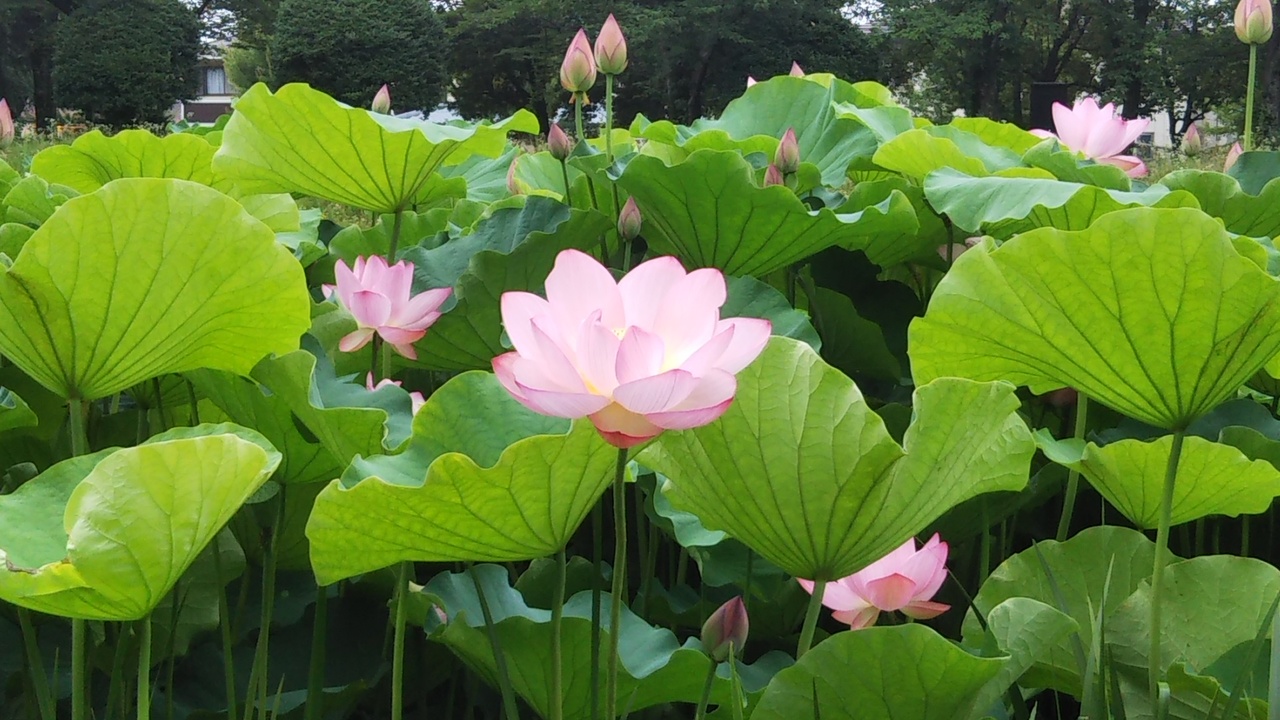 ここのハスは背が高く、花を上から撮影するには、脚立が必要なほどです。