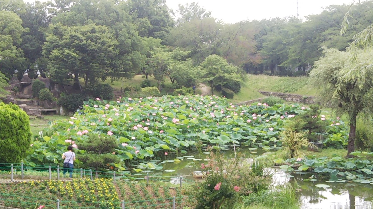 この日も朝から沢山の人が散歩がてら、ハスを見に来ていました。