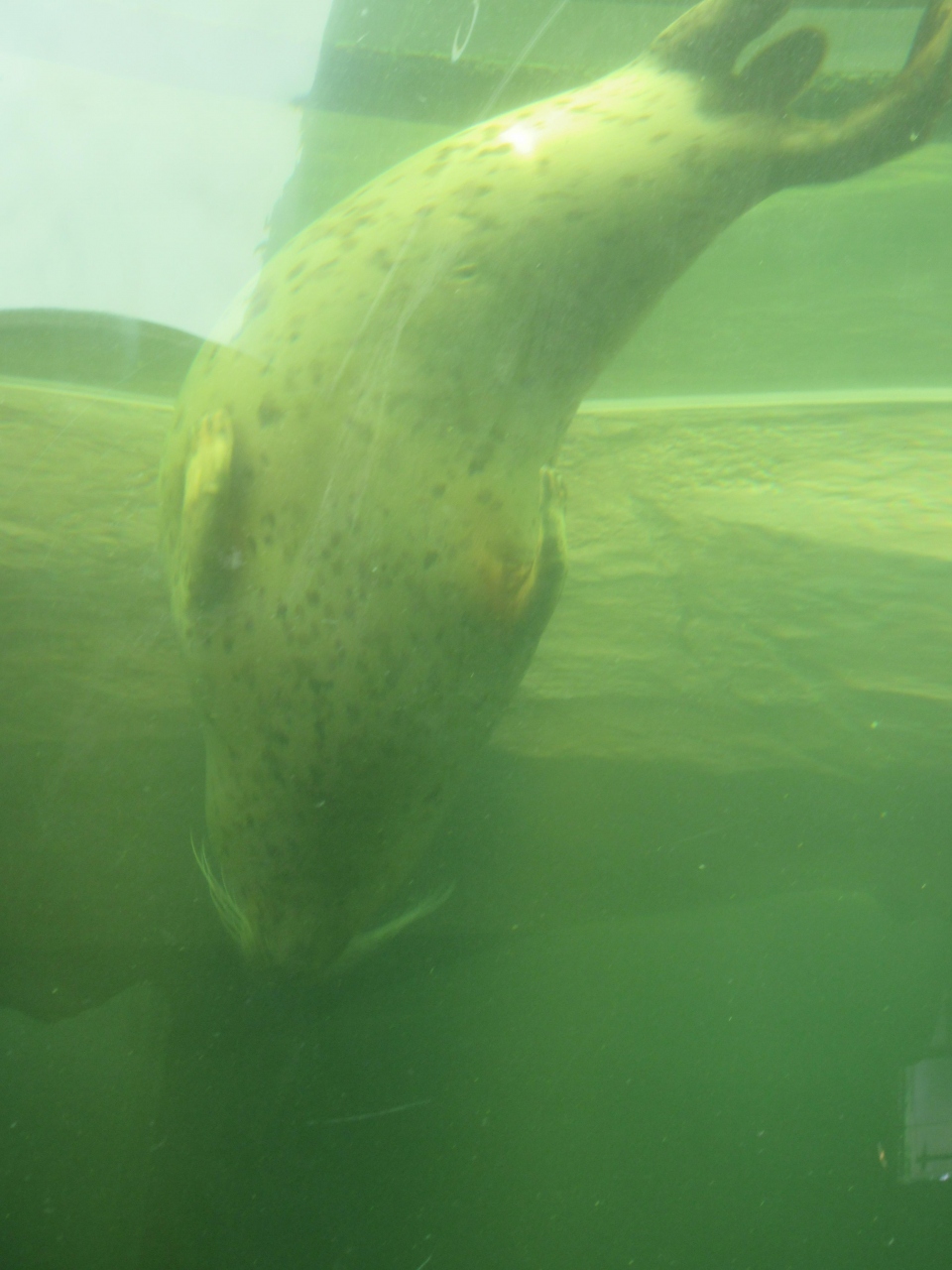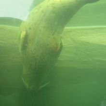 マリンウェイという円柱水槽が、有名であり印象的なあざらし館。ここをあざらしが通るときは迫力感じます。意外と泳ぐのが早く、あっという間に通り過ぎてしまうので、写真を撮るのはなかなか難しいと思います。優雅に泳ぐ姿は気持ちよさそうです。