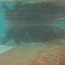 水中ですいすい泳ぐかばを見たのは初めてだと思います。おおきく重そうな体で、優雅に泳ぐ姿はちょっと不思議な感じがしました。水槽の下からもみることができますが、水が濁っていてあまり見えませんでした。かば館はVR対応しています。
