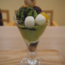 抹茶パフェ(あずきわらび白玉)は、当店が提供するパフェの1種。