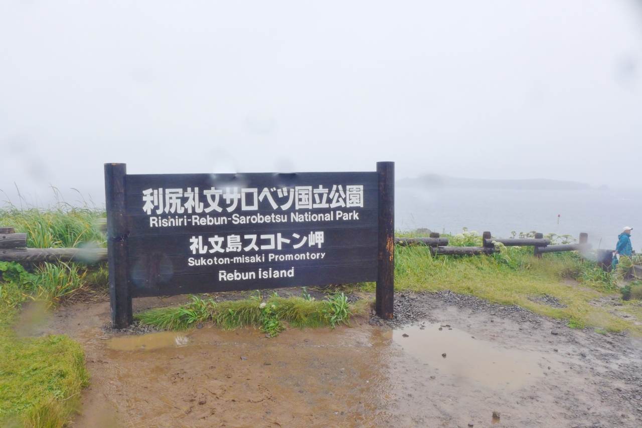 JTBのツアーを利用した初めての礼文島観光でしたが朝からあいにくの雨模様、礼文島最北端の地、スコトン岬からは辛うじてトド島が見えました。