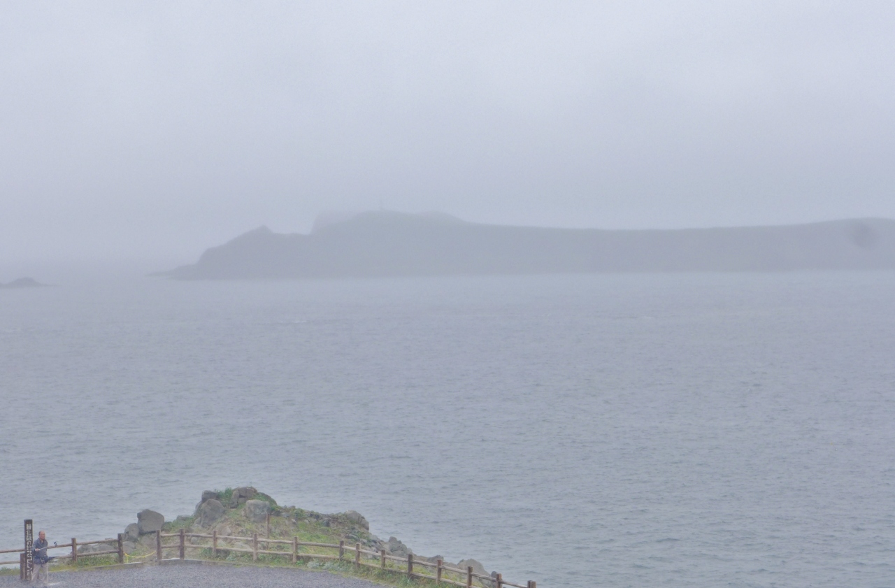 あいにくの雨模様だったのでスコトン岬からは島影がぼーっと見えるだけでした。