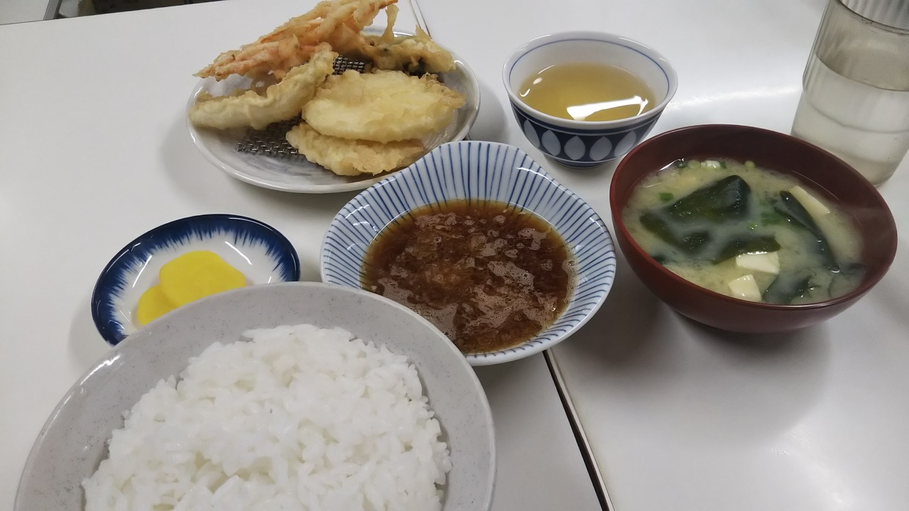 小倉駅から小倉城に向かった商店街のなかで看板を見つけました。地下におりると食券を買い、カウンター席に座ります。数分待つとご飯、味噌汁、天つゆ、天ぷらがどんどん給仕されました。ささみ、きす、野菜など五品だったと思います。1000円を切る価格がすごいです。