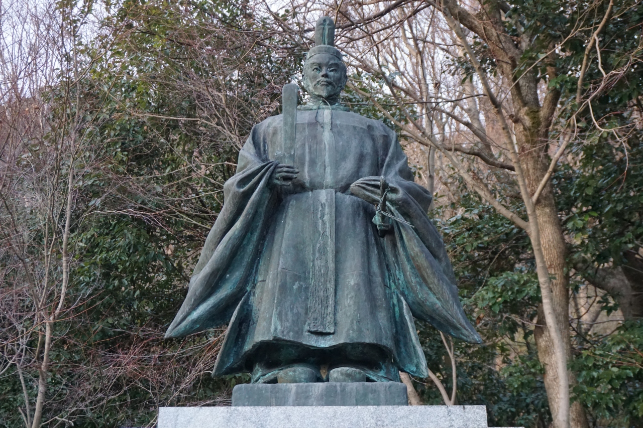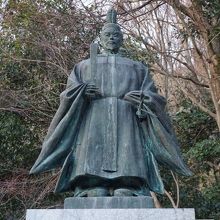 豊臣秀次像は、近江八幡の市街外れ。八幡公園の奥の方に建っていました。武士というよりも古式ゆかしい貴族のような装束姿。秀次は近江八幡の市街を整備し、近江八幡の基礎を築いた恩人なんですが、秀頼が生まれると、その後はご存知の悲劇が襲う。周囲にはそんな説明も何もなくて、ただこの像が建っているだけ。像はほとんど傷んでもいないし、少し茶目っ気のある表情。近江八幡にあっては多くを語らなくてもいいのかもしれません。