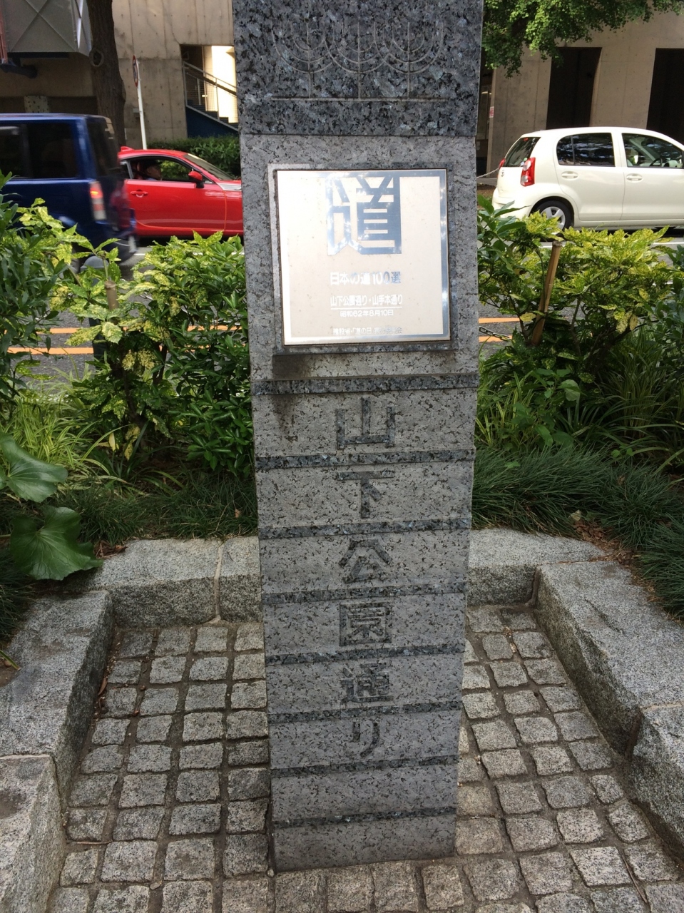 新緑の美しい時期に訪れました。この山下通り沿いに、山下公園、大きな船の氷川丸、夫が小さい頃行ったというマリンタワー、老舗ホテルであるニューグランドホテル、バラ園などが見れます。港町らしさを感じられる歩道です。
