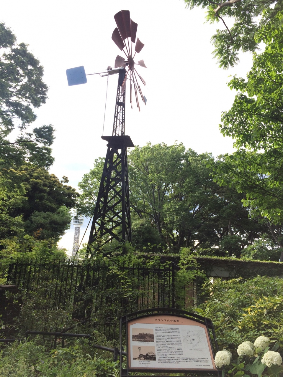 港の見える丘公園には幾つかのセクションに分かれていて、フランス山は黒い門を入っていく場所です。新緑の時期で、緑やアジサイがとても綺麗でした。日傘をさして、散策しました。平日の午後ですいていました。階段が多いです。