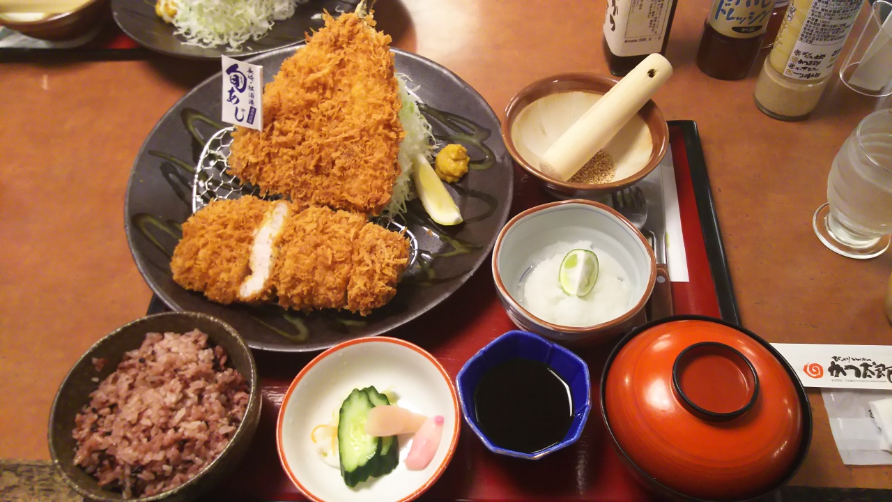 茨城を本拠にするばんどう太郎グループのとんかつ店のブランド。店名に「かつ」とつくがメニューはとんかつ以外も揃い、店内もテーブル席、小あがり中心で広々として、ロードサイドの和食ファミレスといった趣。平日の19時頃に訪問したがお客さんはまばらだった。