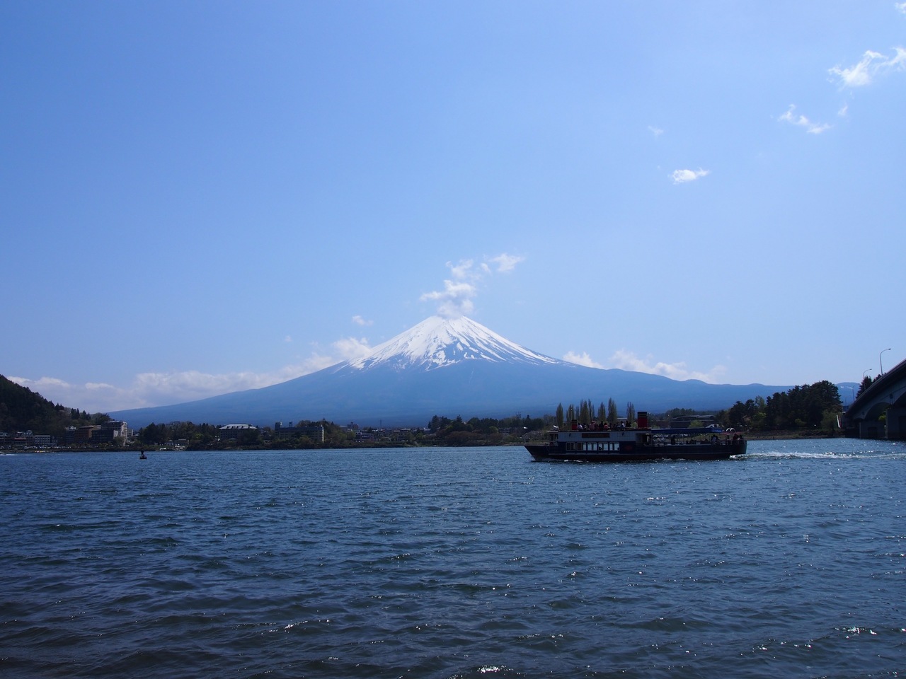 晴れていたので富士山が綺麗に見えました。河口湖越しの富士山は絶景です。水も綺麗なので湖畔を散歩するだけでも楽しいですが、モーターボートなどのアクティビティもあり、かなりスピードを出して走るのでとても楽しかったです。