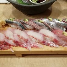本日のおすすめの大ネタ寿司(サンマ、カツオ、胡椒鯛、髭剃り鯛など)の大ネタのお寿司が1カン100~200円で食べられました。ネタが大きく、新鮮で美味しかったです。
