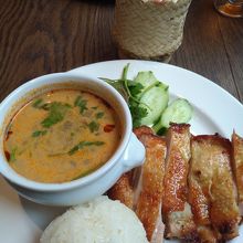 とてもおしゃれな雰囲気のタイ料理屋さんです。鶏肉の料理を頂きました。名前は忘れてしまいましたが、かりっと焼かれた鶏肉がとても美味しかったです。スープセットにするとトムヤムクンと野菜スープとで選べます。トムヤムクンはお店によってはイマイチと感じることが多いのですが、こちらのはかなりタイプで美味しく頂けました。他の料理も食べてみたいです。