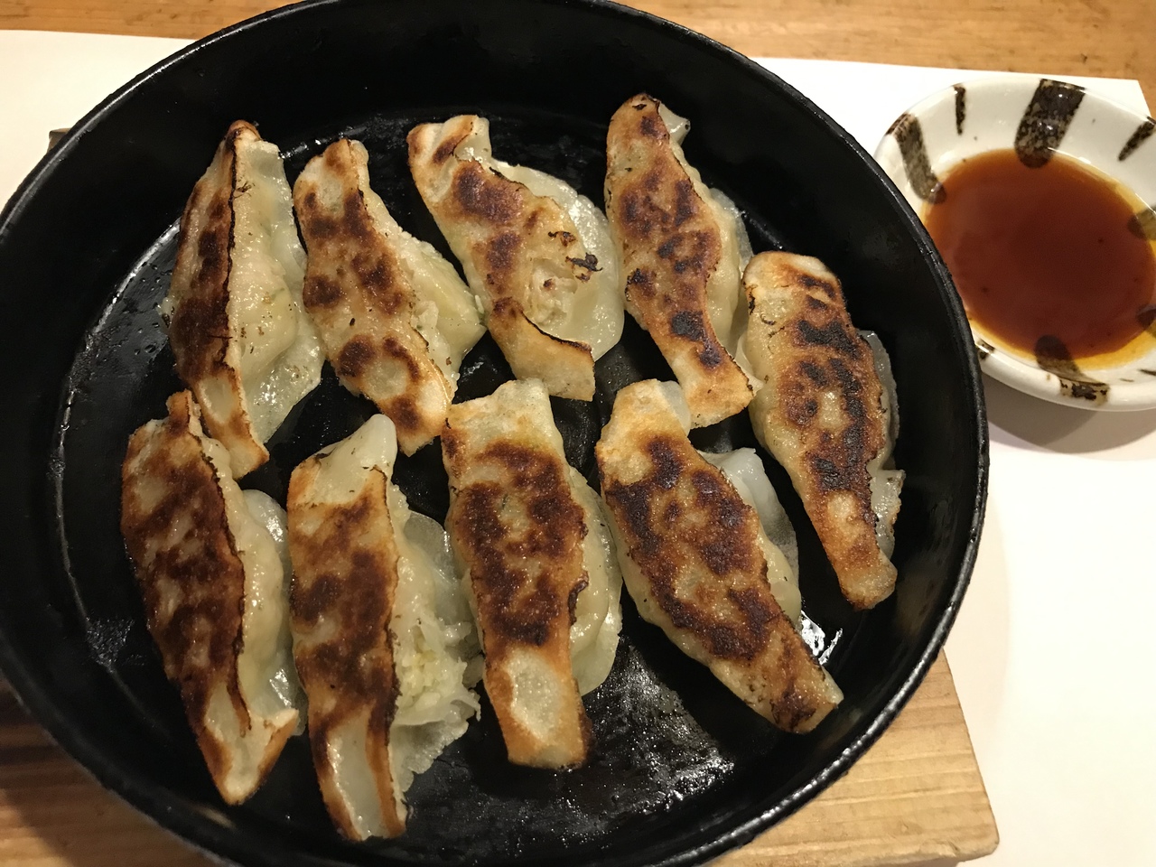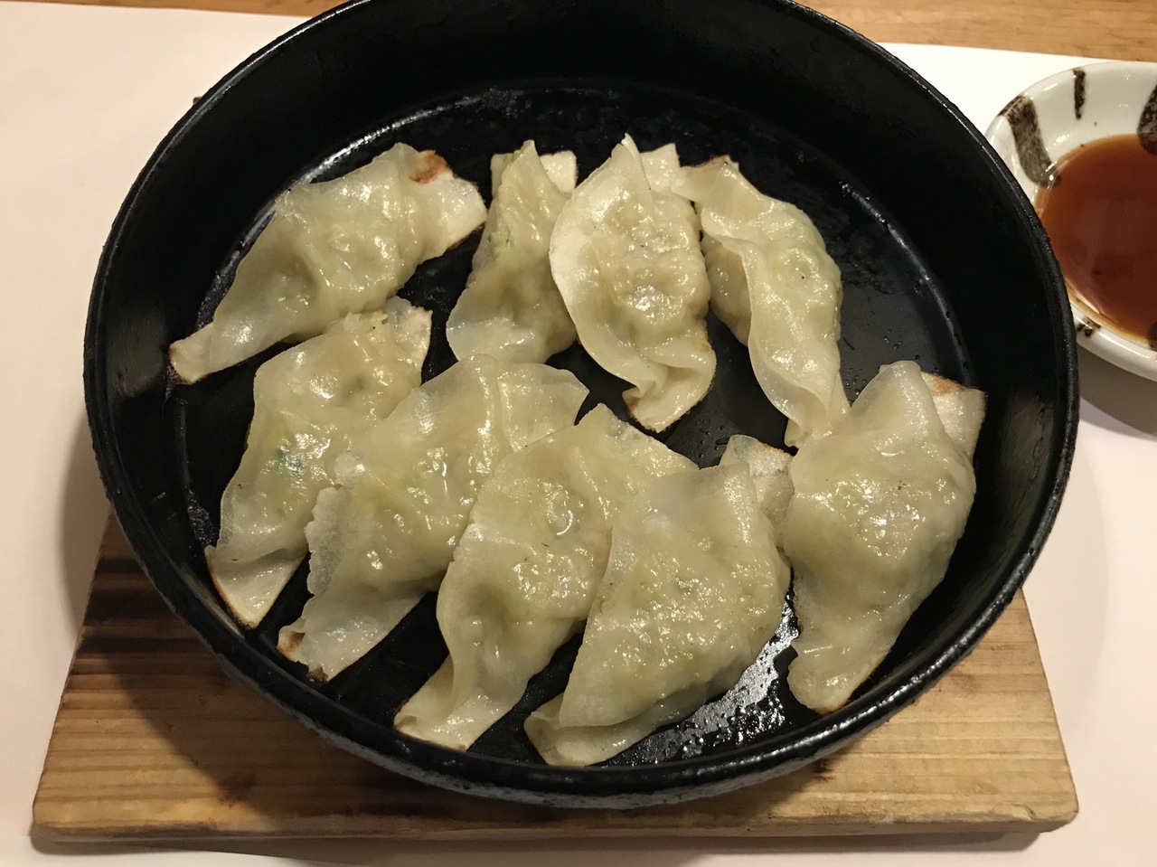 インスタ映えしないので、餃子をひっくり返して焼き目を表にしてみました。