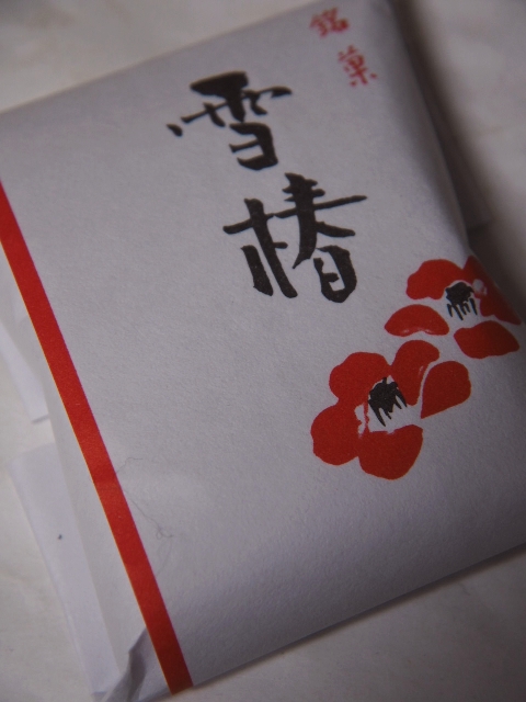 菓子名の雪椿は、新潟県の木で、加茂山一帯に群生しているという。残雪の中に紅い花を咲かせるとか。