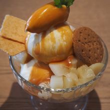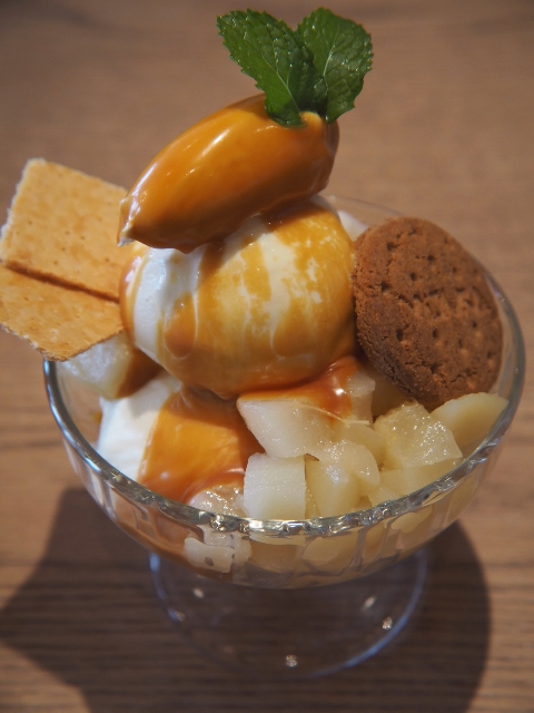 キャラメルと洋梨のパフェは、当店が提供するデザートの1種。