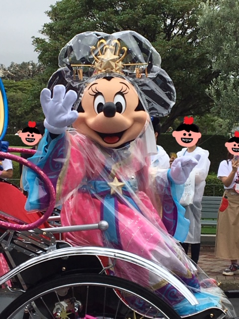 カッパを着て仮パレード(あいさつのためにミッキーたちが通過するだけ)してくれました。