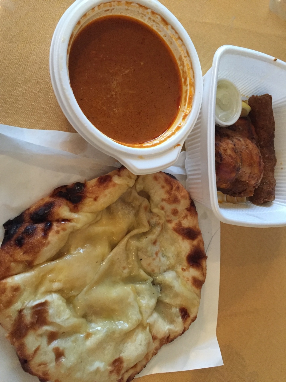 お気に入りのゴルゴンゾーラナンとバターチキンカレーを出前館で頼もうと思ったら1500円から1800円に最低宅配金額が変わってました。いつもはマンゴラッシーを頼んでましたが代わりにタンドリーチキンとシークカバブのセット500円をオーダー。美味しかったです。