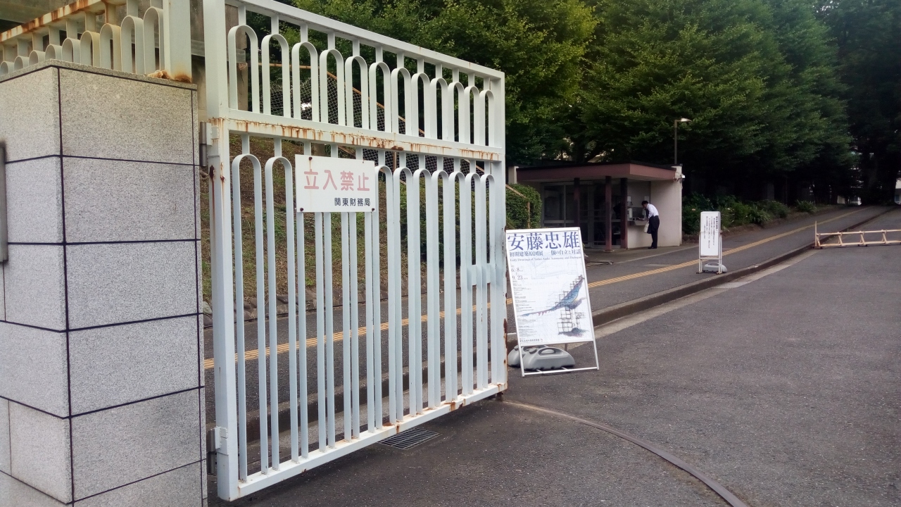 今回は平日に行けたので、湯島合同庁舎から行きました。守衛室で入場バッジを受け取って、ぐる~っと回って行くことになります。