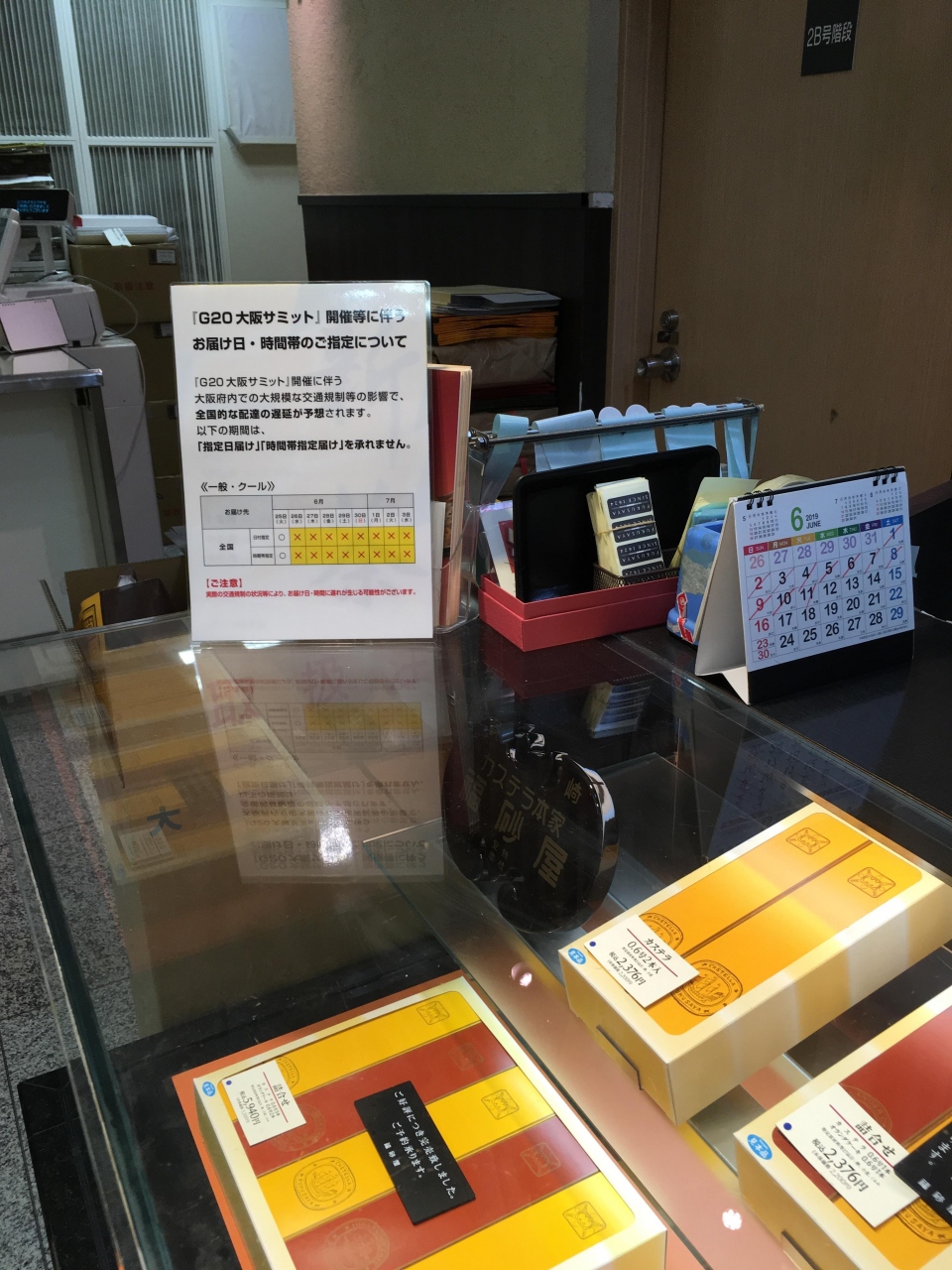 海外に行く前に立ち寄ることが多い福砂屋高島屋大阪店さん。カステラ屋さんはいろいろありますが、ここのカステラはとにかく美味しい。特に五三焼きを食べたら他のカステラは食べる気もなくなります。私が行ったときはG20前だったので、配送なども混乱していました。