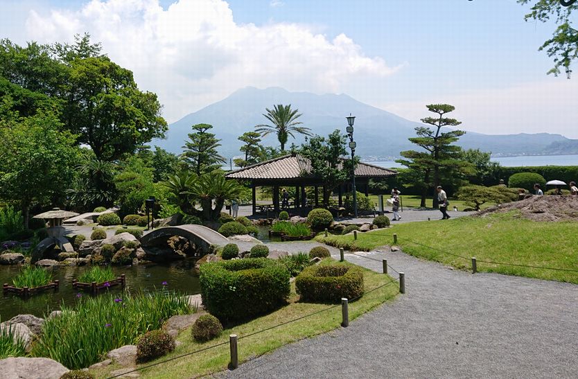 仙巌園は島津家19代光久によって築かれた薩摩藩主島津家の別邸です。園内の御殿を見学するには別料金が必要でした。入口で靴を脱ぎビニール袋に入れ各自持って見学しました。御殿内は広く立派な造りで、当時のお殿様の暮らしぶりをうかがい知ることができました。