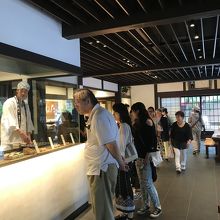 老舗のお菓子屋さんです。お土産もありますが、お時間あるならやきたてのお菓子を店内で食べていかれるのもおすすめです。たこ焼きみたいなのを店内でライブで焼かれてます。食べてみると中にあんこが入っていてめっちゃお菓子です。