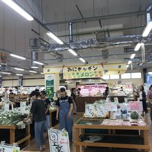 店内は広々としていて見やすいつくりです。滋賀でとれた新鮮お野菜がたくさん売ってあってついつい買ってしまいました。試食コーナーもあって味見して買えるのもうれしいですね。