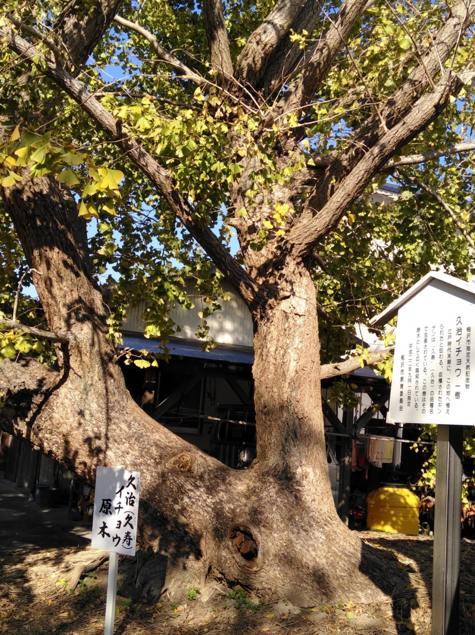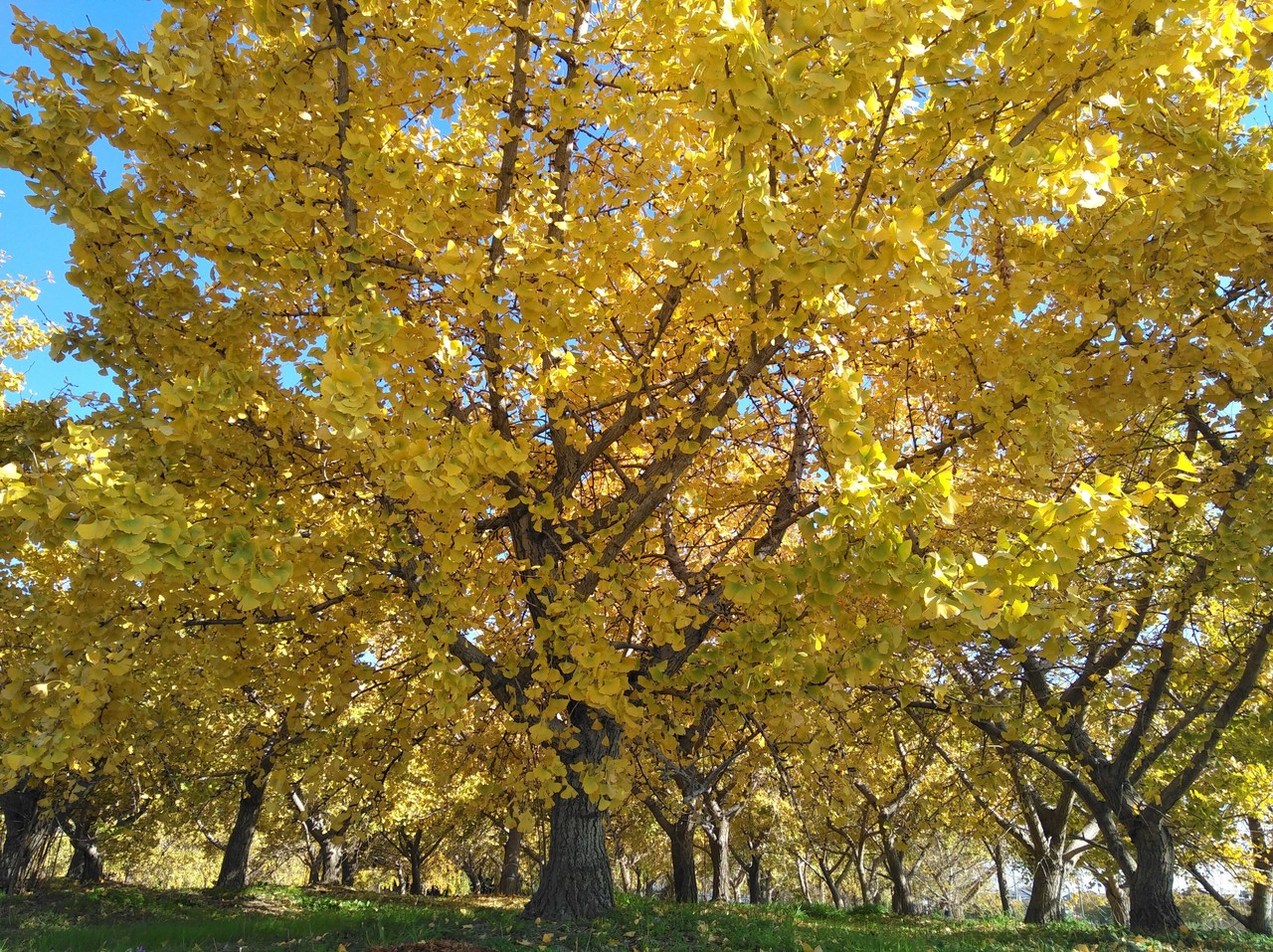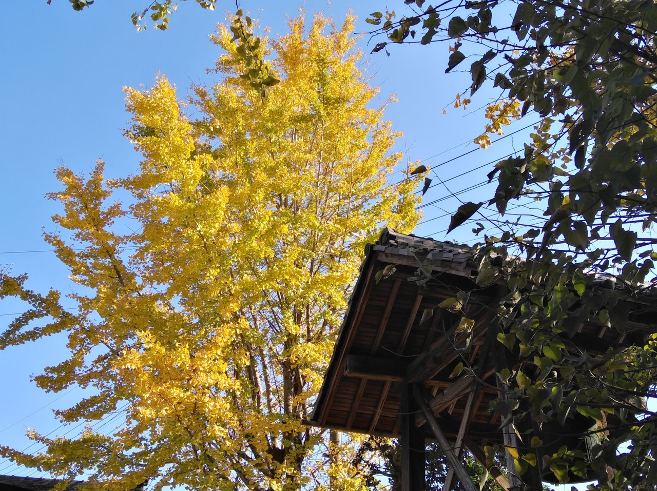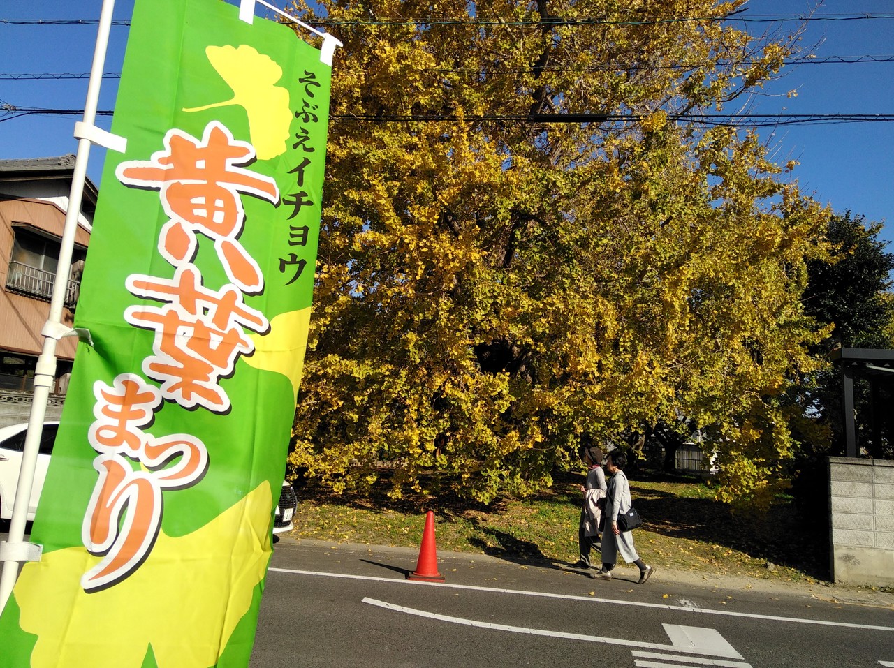 銀杏が黄色く色づき、街全体が明るい雰囲気になります。銀杏祭りは露店も出て賑わいます。銀杏農家で収穫された銀杏も買うことができ、毎年楽しみにしています。
