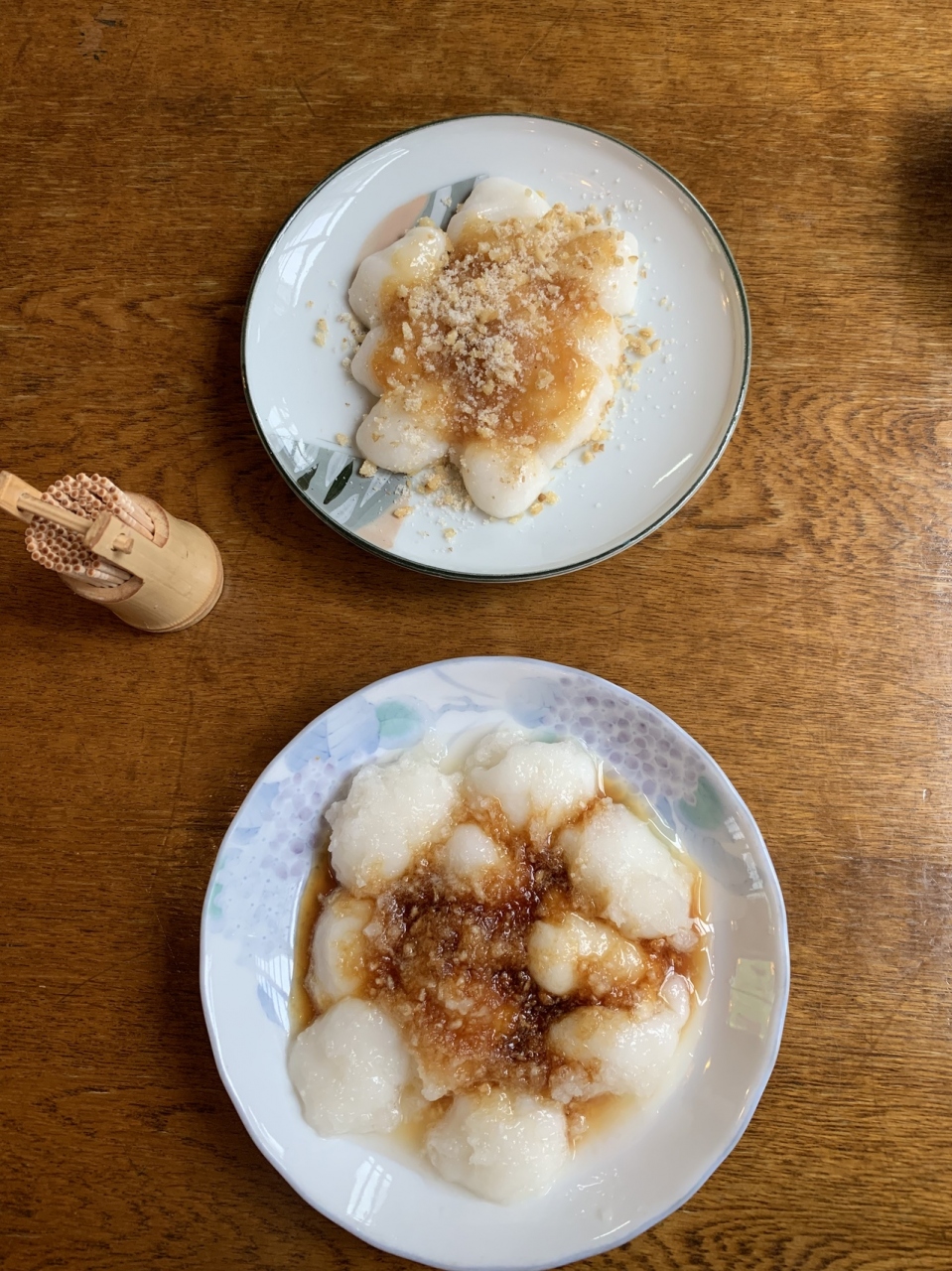 みそくるみ餅と大根おろし餅を頂きました。一口大のお餅が、10個くらいで一皿でした。柔らかで、美味しかったです。