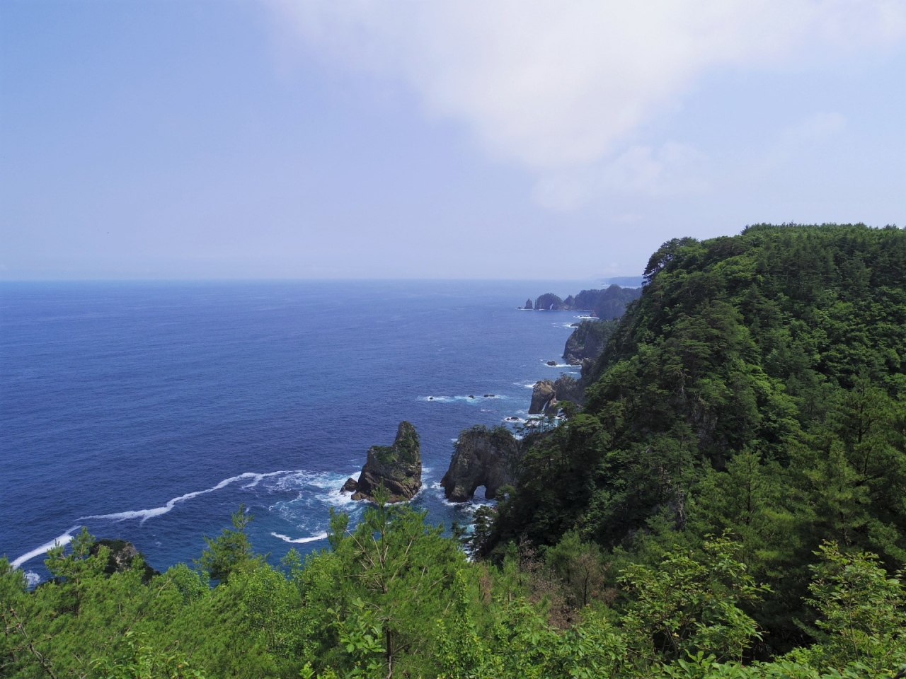 広い駐車場から 少し歩くと、第一展望台です。 ここから雄大な北山崎の断崖が望めます。 そこから363段の階段をいくと、第二展望台です。 第二展望台は第一展望台より、少し近くから 断崖を望めます。 363段といっても、登りと下りが組み合わさっていて、途中に休憩できるベンチもあります。