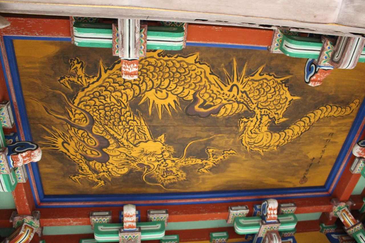 門の前には拝殿があるので、つい登り切った喜びですぐに拝殿に向かってしまうのですが、是非門を潜る時に天井を見上げて見て下さい。