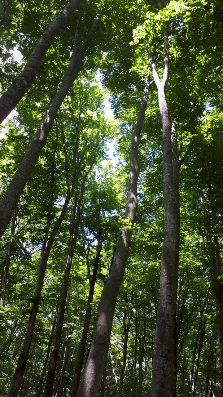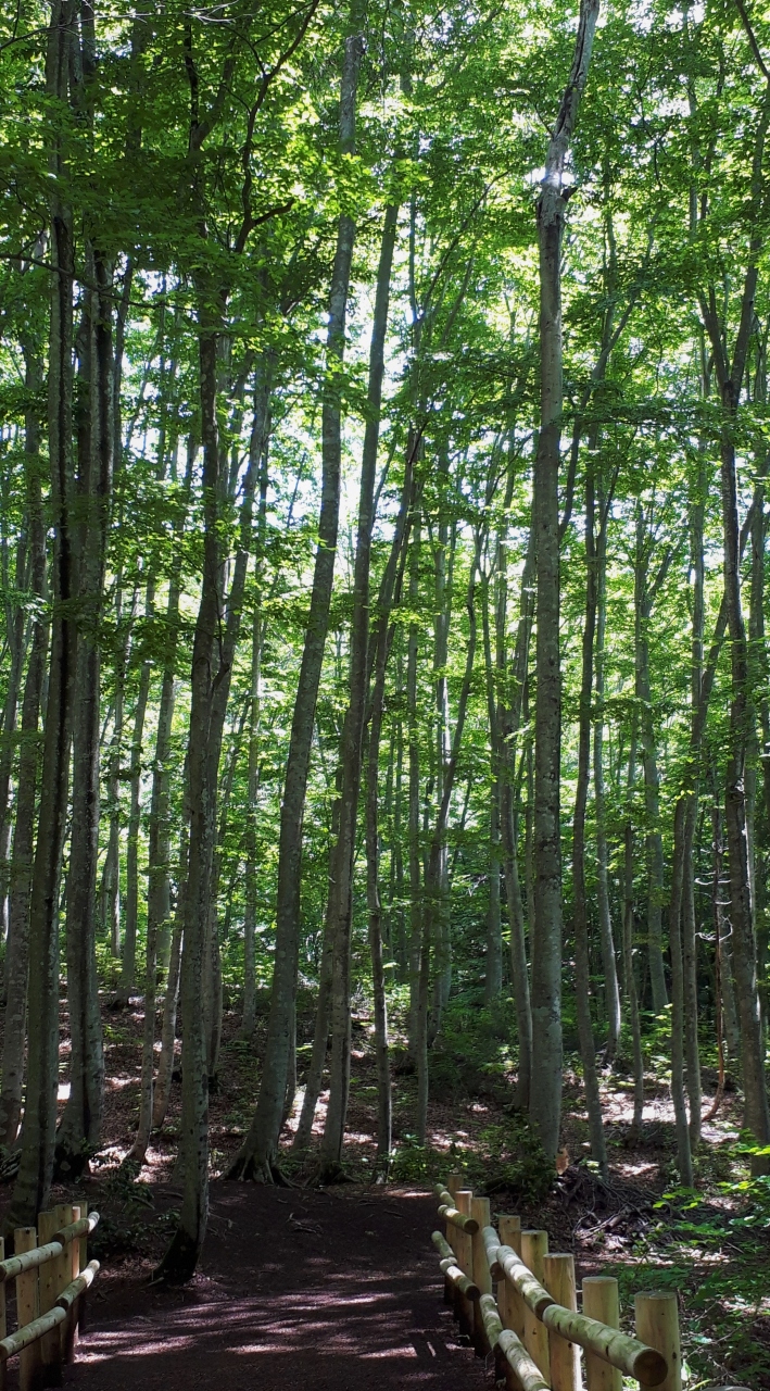 360度真っ直ぐ高く伸びたブナの木が圧巻です。ルートなどの案内図は特にないのでちゃんと歩いてきた道を忘れないように気を付けて下さい。とくに制限などはなかったので歩きたいところ歩けますが、ちゃんと道になってないところは足もと注意です。