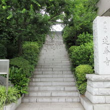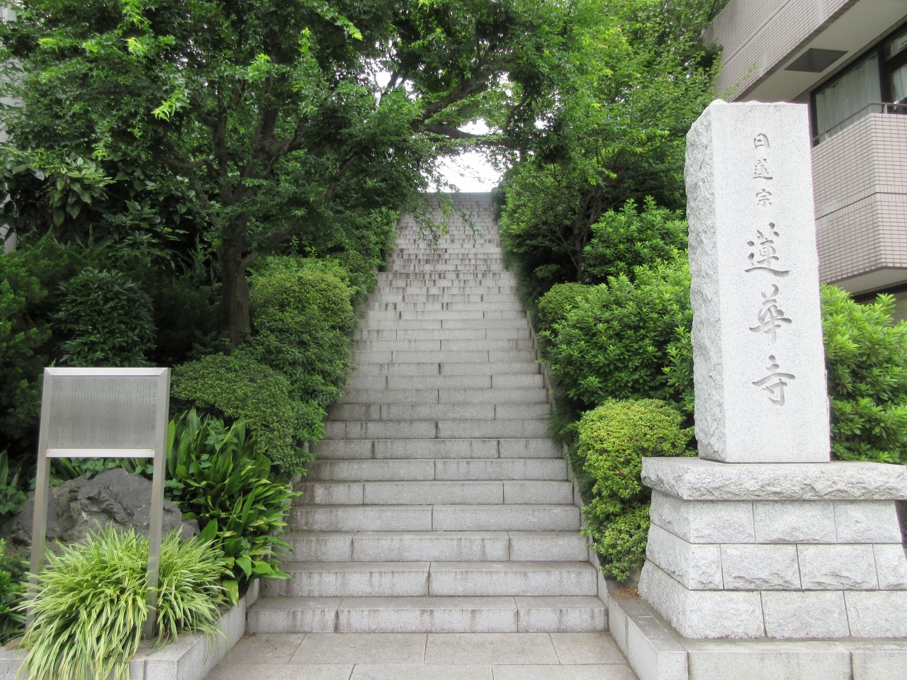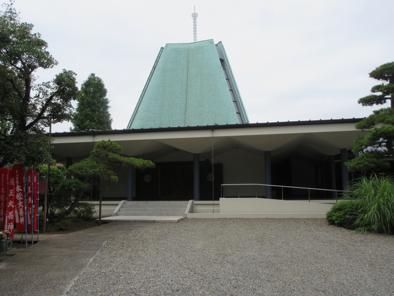 白山通り沿い、白山下交差点から50mほど東京ドーム方向に行ったところに建つ、430年ほどの歴史がある日蓮宗の寺院です。屋根の上に山の形をした塔のようなものが建つ本堂は、40段ほどの階段を上った高台に建っています。江戸時代に徳川家光が鷹狩りで寺に寄った際、歯の痛みで泣きじゃくる少女に境内の井戸から湧き出る清水を飲ませたところ、痛みが消えたという言い伝えがあり、現在も境内には歯痛の守護、熊王大善神が祀られています。階段横に立つ説明板には、鷹狩りの際に家光が植えた木槲と安置した石像が残っていると記載されていたので、お寺の方に場所を尋ねたところ、どこに残っているのかわからないと言われ残念に思いました。