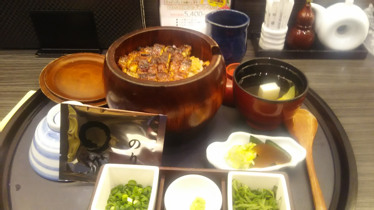 JR名古屋駅構内にあるひつまぶしの有名店です。行列店との事でしたが、学会の帰りで昼遅かったためか並ばずに入れました。案内されたカウンター席は、隣の人とラーメン店のような距離感です。