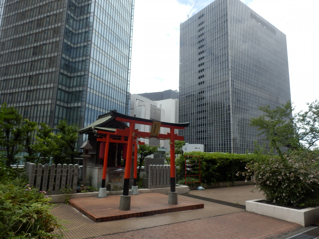 大阪駅前第二ビル三階にあるお稲荷さん、このビルは高層だがビル三階までは周囲が張り出して青空駐車場になっている、ここの隅っこにあって判りにくかった、ビル三階の東西南北にこの広場へ出るドアーがある。民間のビルや会社には自前のお稲荷さんを見かけるここもビル会社の管理のようだ、徳兵衛さんとお稲荷さんの関係は説明板に記されていたがかなり伝説的にな内容、霊験あらたかな神徳かあるそうなのでこうして祀られています