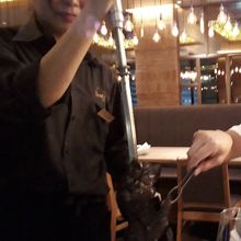 シュラスコが食べ放題で、次から次へと肉が運ばれてきます。