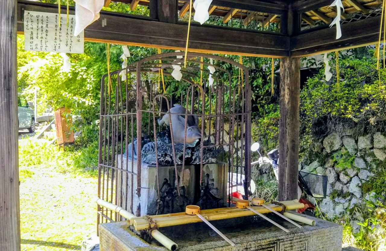 こちらの三尾明神さまが卯の年、卯の月、卯の刻、卯の方角から出現されたとの言い伝えにより、ウサギが神様のお使いとされているそうで、御神紋は「真向きのうさぎ」、境内のあちこちにウサギが奉納されていました。
