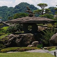 島津家19代光久によって築かれた仙巌園の錫門近くにあります。大きな笠石、その上に獅子が乗った珍しい造りの灯籠なので目につきます。笠石は畳8帖ぐらいあり本当に大きかったです。近くには笠石が鶴が羽を伸ばしたように見えることから名前が付いた「鶴燈籠」がありました。