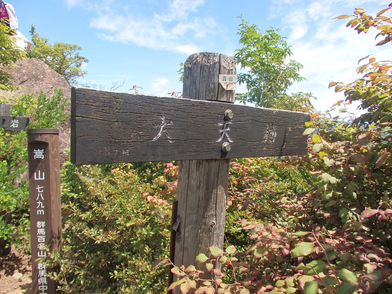 東登山口から急な木段登りを経て38分経塚に到着。ここから嵩山山頂までの岩登りが本日のハイライトです。すぐに鎖のある岩急登りに入る。一人ずつ、ゆっくり登ります。6本目の鎖を経て嵩山山頂(789M) に到着しました。順番を待ち、更に上の大天狗に登る。360度の大パノラマです。本日のコース、昨日の花の山と異なり、野花はほとんど見られない岩山でした。長い6本の鎖が連なる岩場です。高所恐怖症の私にとっては難所ですが、木が遮り両側の下が見えないので恐怖感を感じず、鎖はバランスを保つだけの片手で持ち、もう1本の手は岩をよじ登るようにして登りました。あまり恐怖感は感じませんでした