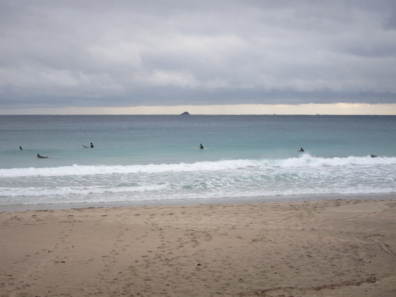 下田の少し先、夏の海岸は真っ青な海と真っ白な砂浜で大いに賑わう海水浴場で、浜辺から見るロケーションも素晴らしいものがあります。そんな海岸ですが、冬の天気が良くない日に行ってみると、波間に黒い頭がいくつもいくつも浮かんでいます。どんよりとした空模様の中、サーファーたちの天国と化していました。