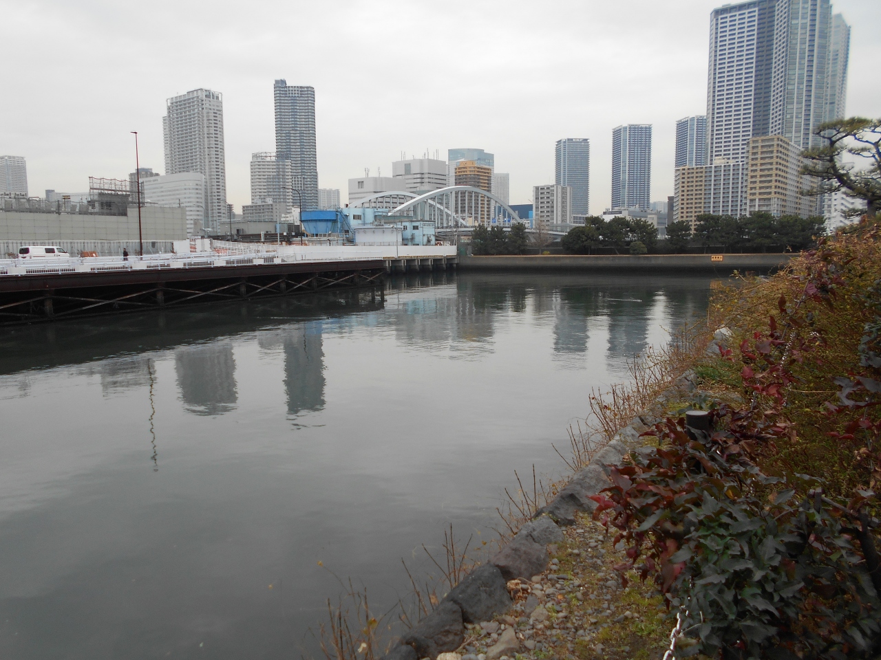 浜離宮恩賜庭園北側の大手門橋が架かる川で北側沿いを灯台跡迄流れ東京湾に注いでいます。川の殆どが埋立てられていますがこの区間だけがそのままの川だそうです。浜離宮庭園にとっては無くてはならない大きな存在の川のようです。この川に沿って梅林や三百年の松が美しい姿を見せてくれます。因みに反対の南側を流れるのは汐留川です。